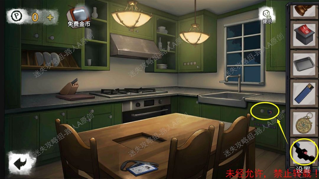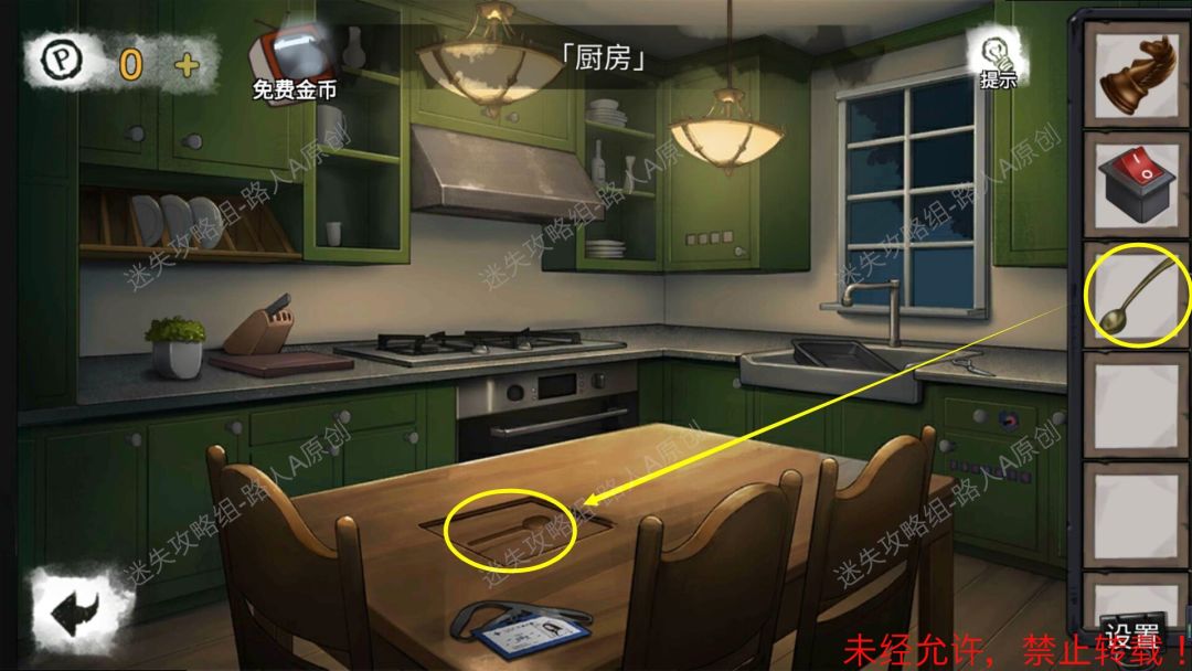 10.前往厨房,把【汤匙】放入桌上的凹槽,获得【不完整的剪刀】。10.1