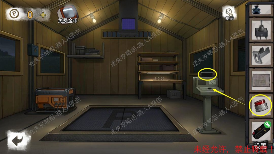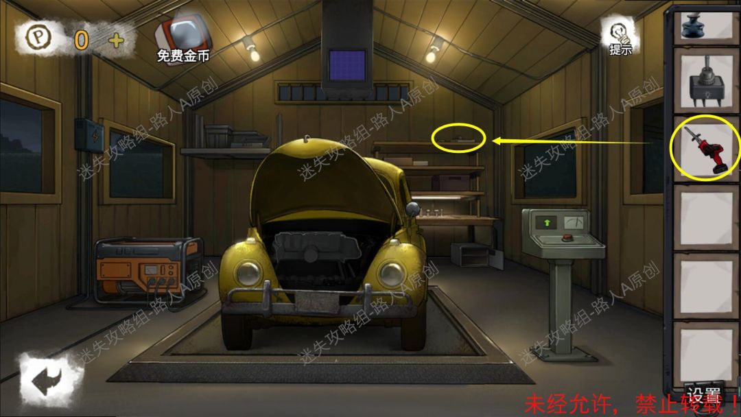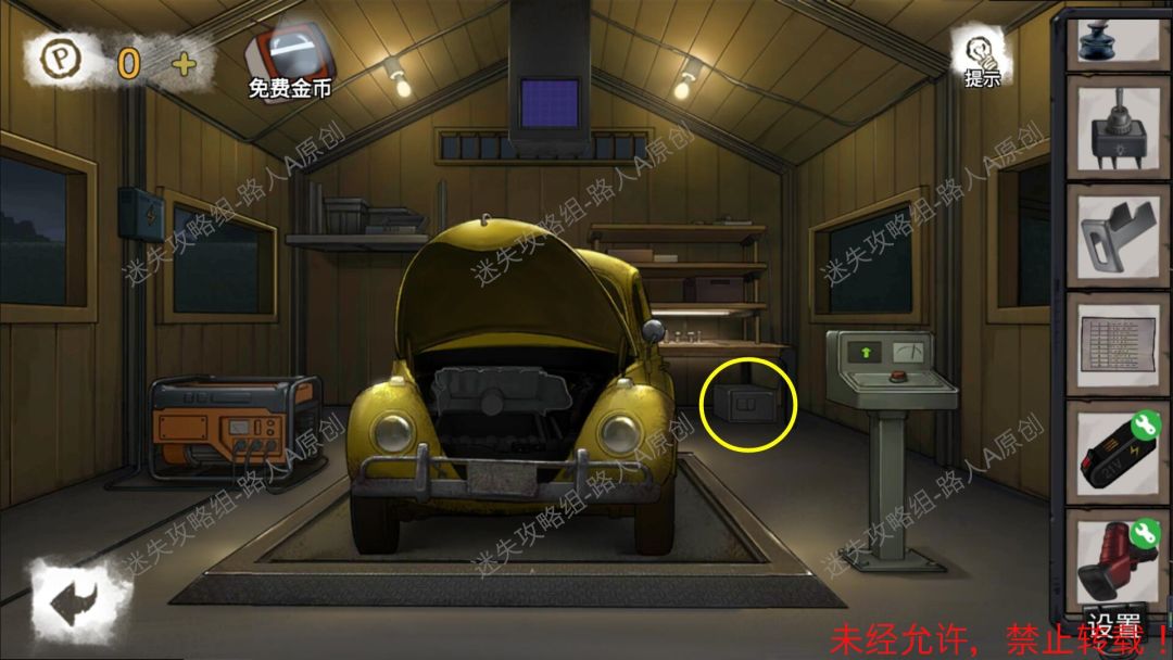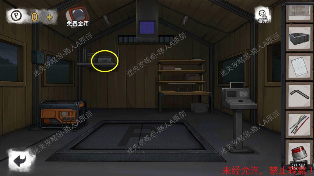 46.前往车库,点击左侧墙上的架子,输入密码【9418】,获得【电池盒】。46.1