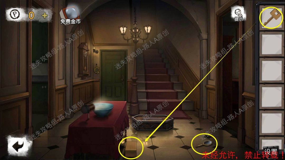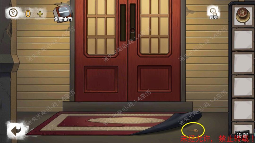 5.掀开门前的地毯,拾取【钥匙】。5.1