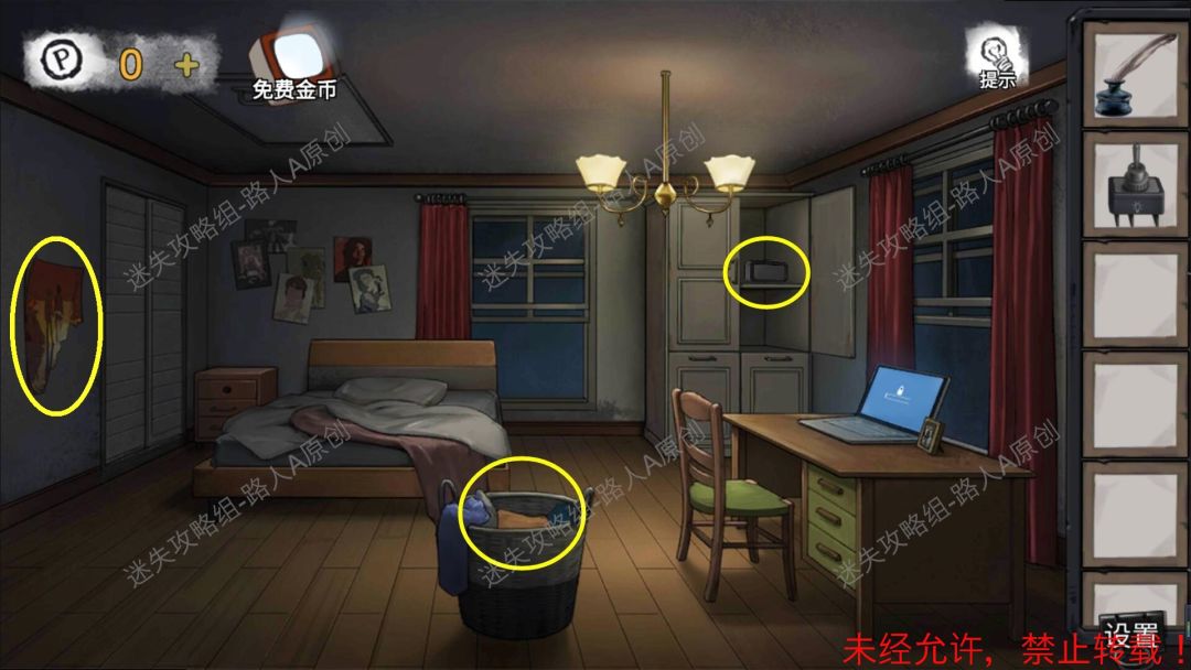 57.柜子里拾取【闹钟】,墙上拾取【海报】,衣篮里拾取【圆球】和【长柄机关】。57.1