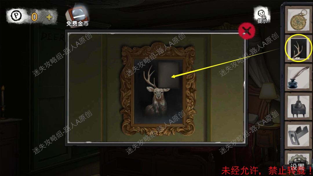 3.把【铃铛】安装在门右侧的鹿头上,获得【鹿头】。3.1