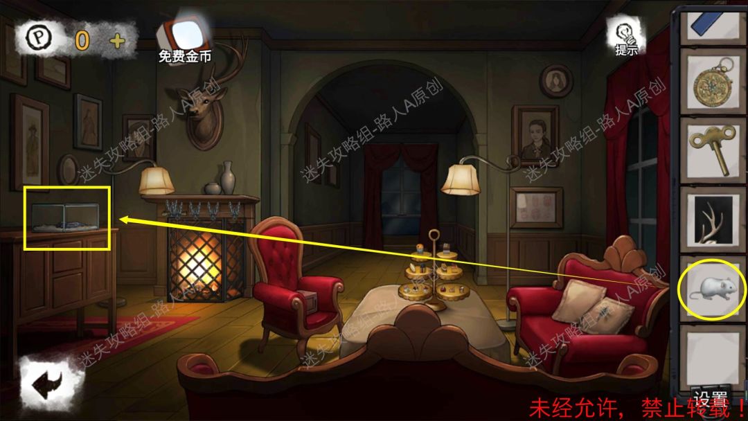 25.返回客厅,把【毒老鼠】给蛇吃,拾取【钥匙】。25.1