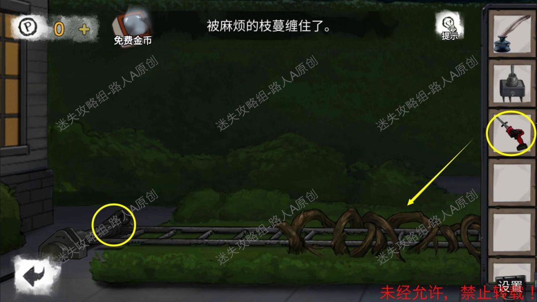 56.返回花园,用【电锯】锯断藤蔓,然后拉下***的把手,***进入次卧。56.1