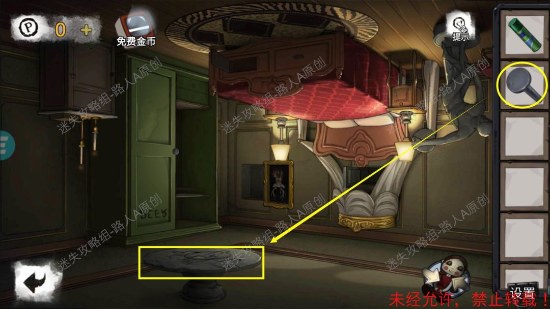 76.返回主卧,颠倒场景至天花板,把【圆形纽钉】放入石桌,完成谜题,获得【圆球】。76.1