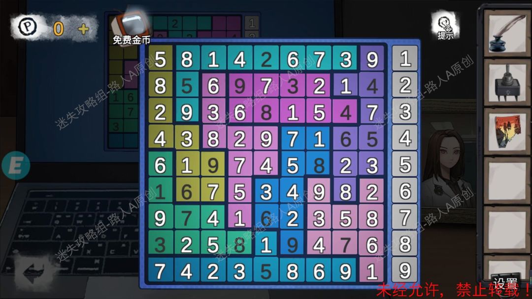 63.返回次卧,在电脑输入密码【606118】,完成数独谜题,获得线索。(数独谜题是随机)63.1