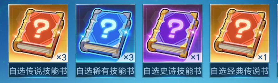 1.概念:有蓝色、紫色、橙色三种品质的技能书