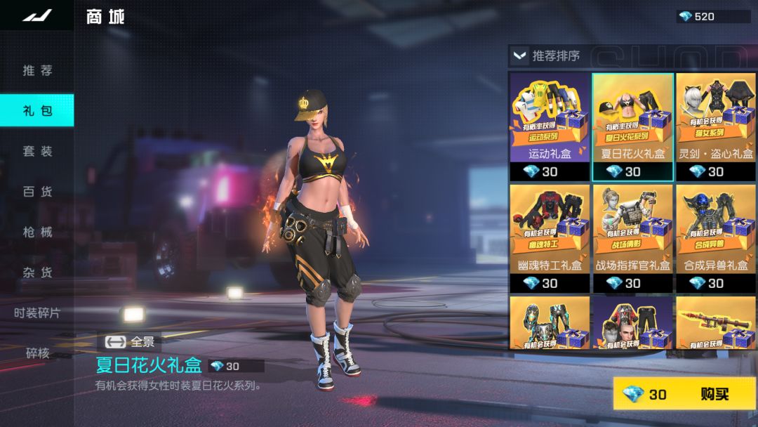 夏日花火礼盒,消耗钻石购买,概率获得女性时装-夏日花火系列。