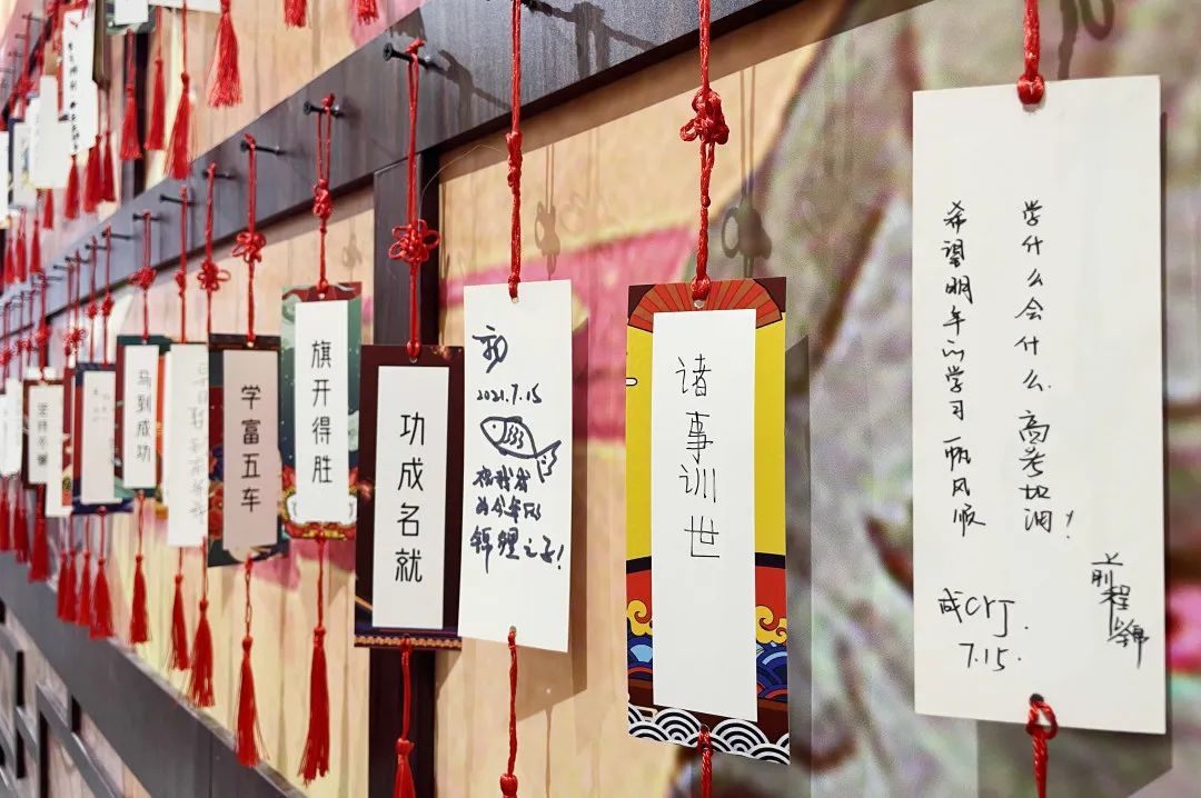 背后的许愿墙上也挂满了许愿卡,透过文字,小九能够想到大家写下心愿时的美好画面,也祝福大家的愿望早日实现呀~