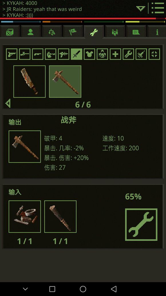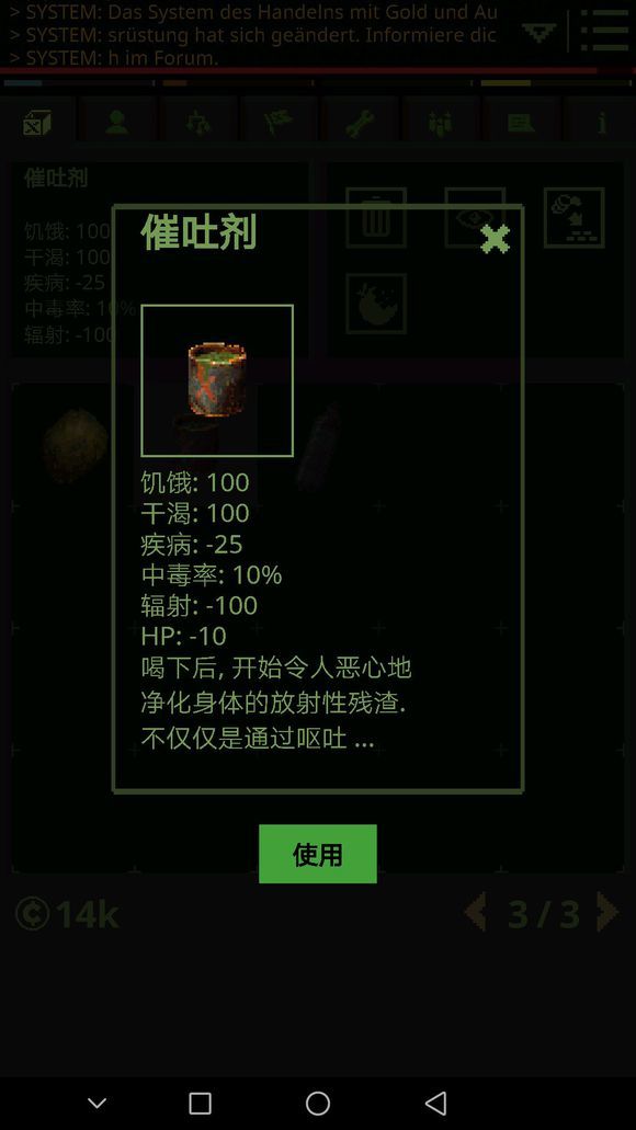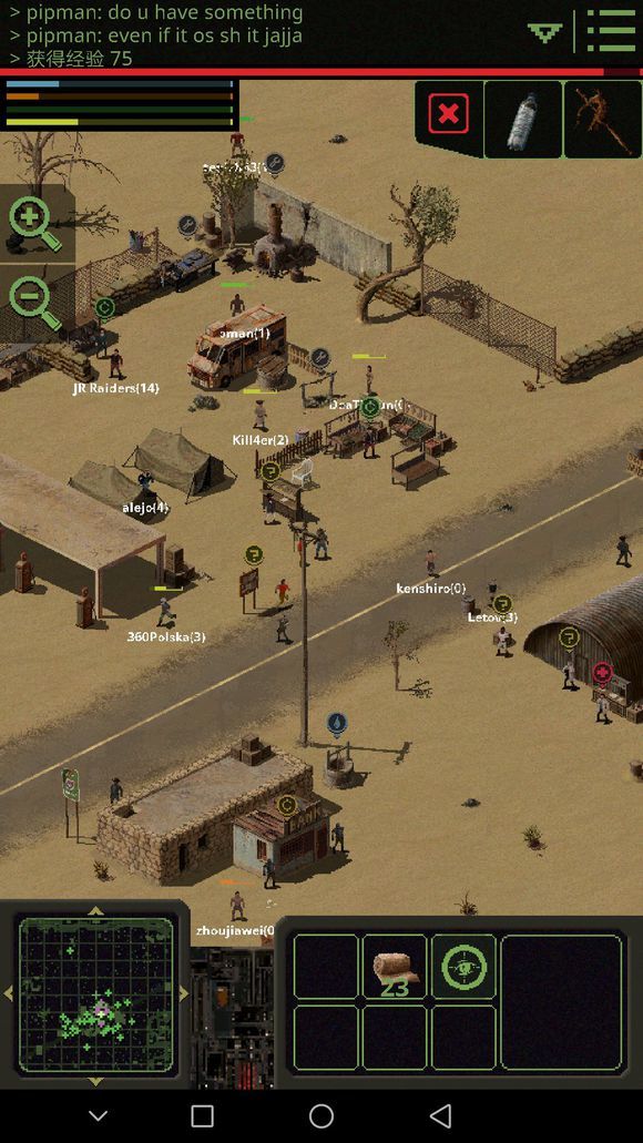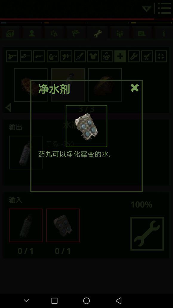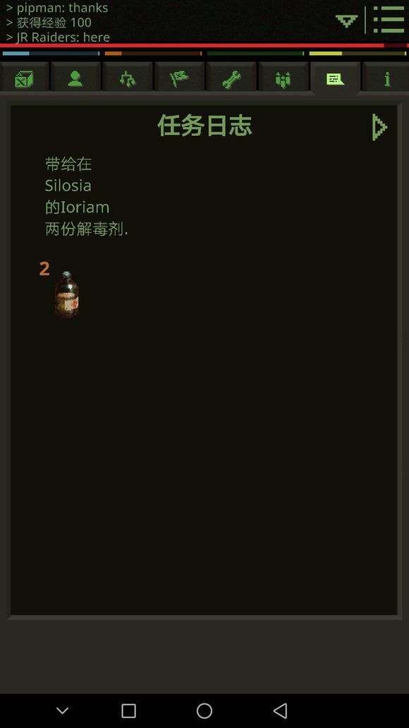 拿到棍子后,去材料商人那购买劣质金属(没有钱把身上吃的东西卖掉就有了,身上的奴隶锁链不要卖后面任务有用先存着)做完战斧后就有武器了,还可以用来砍树,然后去医药商人旁边的NPC和他对话,他需要两份解毒剂,可以自己做也可以从旁边的医药商人买,完成任务后,他会给你一个净水片。以后只要有两个解毒剂,就可以来和他换一个净水片。(新手刚刚玩这个游戏的时候不要跳过对话仔细看,不然你会一脸懵逼,我是谁?我在哪?我要干什么?因为刚开始只有几个NPC有中文翻译,后面的任务几乎都是英文的。再想看到中文就难了。)