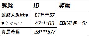 老铁们!现在来公布「穷奇生日礼包」获奖老铁吧,让我们一起恭喜以下3位幸运的老铁们~~获得王牌CDK奖励一份!
