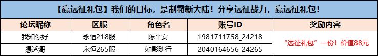 【获奖名单】【赢远征礼包】我们的目标,是制霸新大陆!分享远征战力,赢远征礼包!
