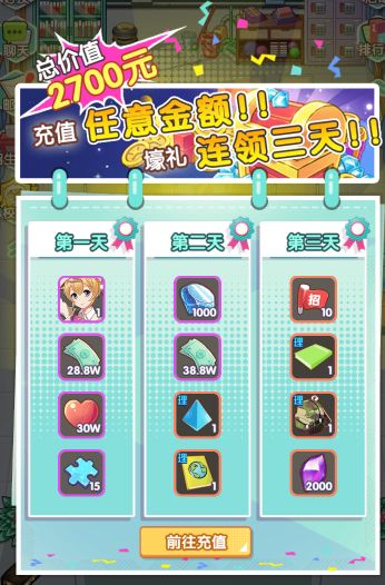 通过测试,首冲礼包的奖励是真的好,第一天给一名艺术类紫色学生,第二天给一套符合该学生品质的学习用品,拿到之后直接三星通关精英关卡,完全感受不到压力的存在。