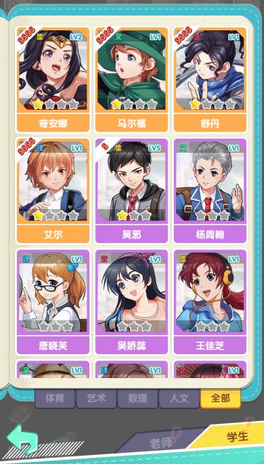 老师也有自己的学科,他们会为这一学科的所有学生提供加成,老师等级越高,提供的加成就越高。名师可以提供2门学科的加成,不过抽到的概率很低。