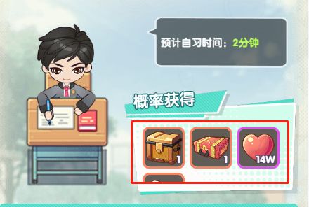 当通关第一章后,自习室系统就可以使用了,自习室的奖励会随着等级的提高而提升,经过测试,当学校等级提升到30级后,甚至可以开出紫色的学习用品,可以大大提升学生的实力。
