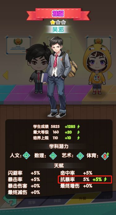 当开启了学府之路的时候,建议将2名文科学生等级提升至15级,文科学生会为自身提供大量的减伤,三星通关的几率更大。
