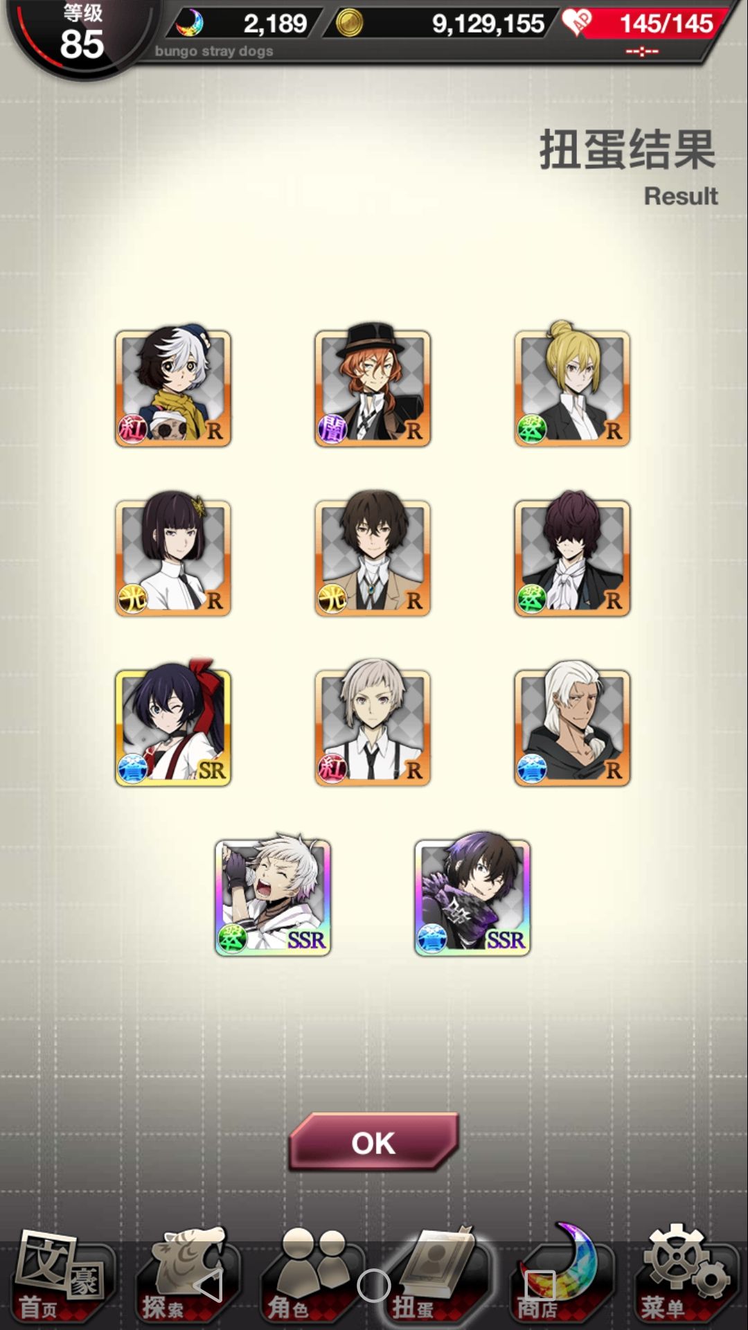 s2出了乐队敦,喜极而泣,中间还叠了两张敦和太宰,歪了个国木田麻麻,最后一发十连出音乐祭敦