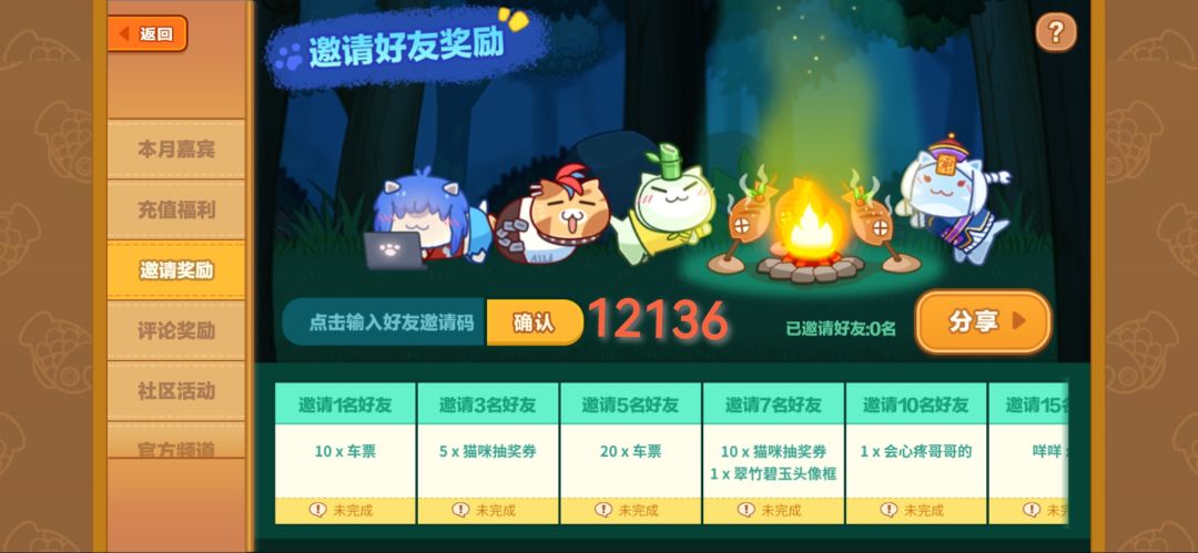 5·限时活动中的邀请奖励别忘记填啦!不嫌弃的话可以填我邀请码嘿嘿嘿🥳。邀请码即是本人的ID(12136),也欢迎大家来找我玩呀~