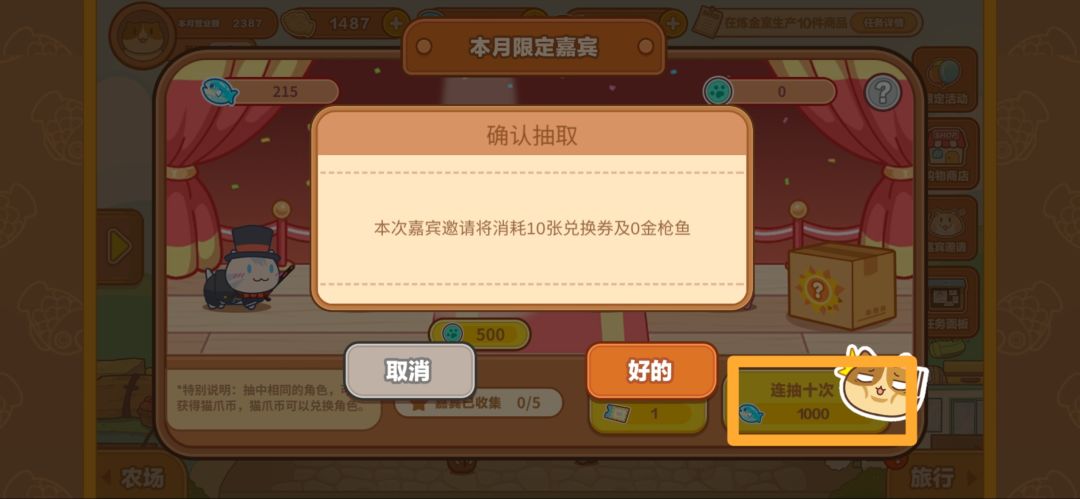 领取后在右侧的嘉宾邀请中直接点击十连抽享受快感!