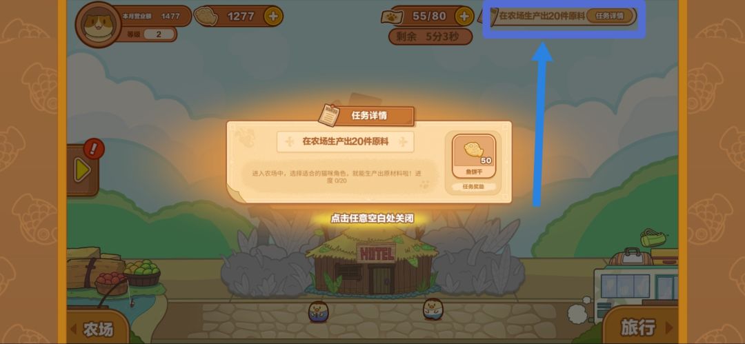 ⚡体力值会随时间恢复,最多储存5点。 然后记得升级农场仓库,解锁钓鱼区域。可以先让芋头或前辈去钓鱼。因为等会就可以抽猫猫所以服务员不着急~