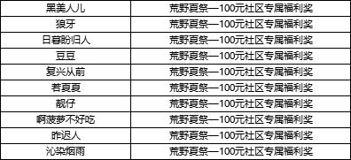 荒野夏祭—100元社区专属福利奖(10份)