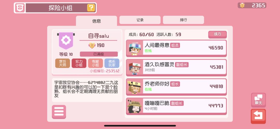 活跃小组,满级满设施,满级小组,小组周贡献第一,收人,另有五百人q群 欢迎小伙伴们加入来交流!