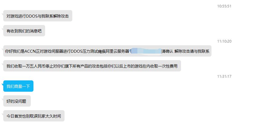 下面是恶意攻击服务器相关人员与我们的私聊记录截图