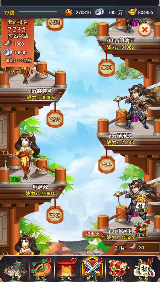 竞技场排名越高奖励越高,每晚22点发放奖励。