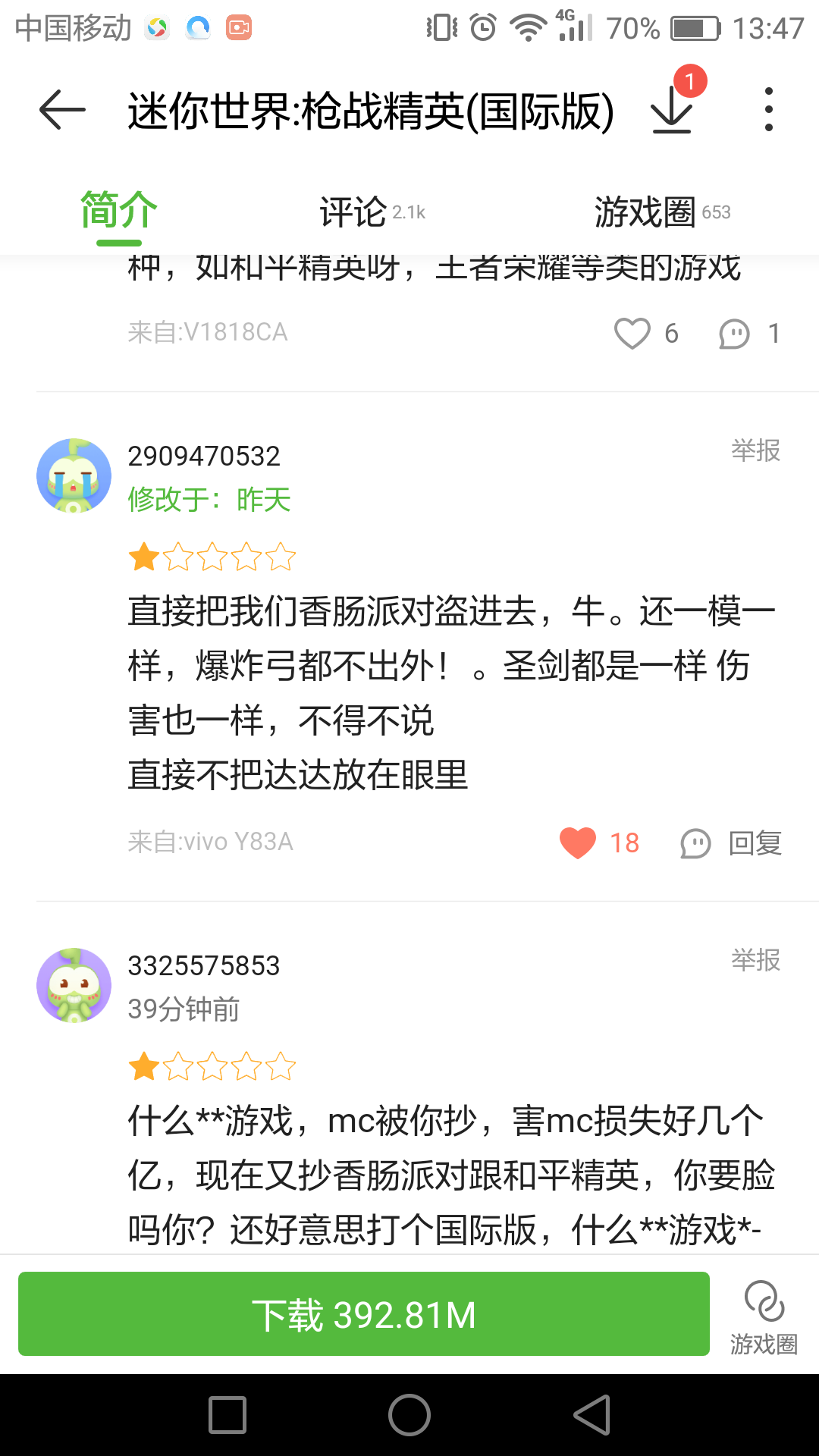 大家听过一个叫迷你世界枪战精英的游戏吗? 这个游戏严重抄袭咱们香肠派对 大家不觉得很可耻吗 如果认为可耻,请打1,并且和我反抗