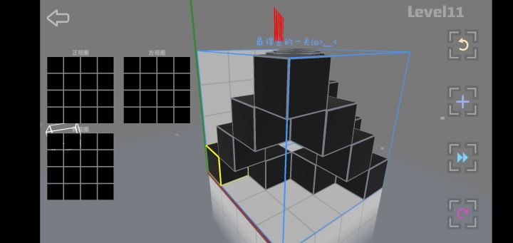 关于十一关的过关方法琢磨了一个小时 按照结构来说一个物体所有都要是想连得所以没有按照腾空的方法来摆 最后发现了秘诀就是十六个 每四个在一个轴的最左边到最右边递增或递减一个互不平行∥即可出来 毕竟作者最得意一关也是想解决的毕竟完美好看一些😁