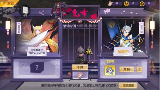 鬼市作为最为妖界最大的商业中心,各方人士络绎不绝。将黄金、白银交换为鬼市通宝,即可兑换海量道具奖励~