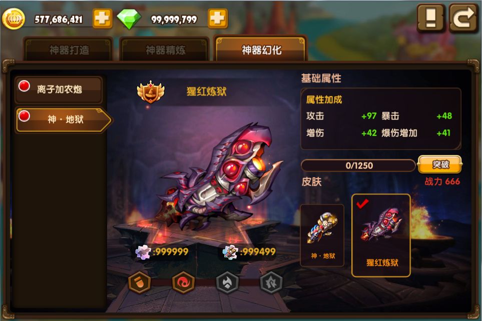 · 只有武器进阶为神器,才能开启精炼