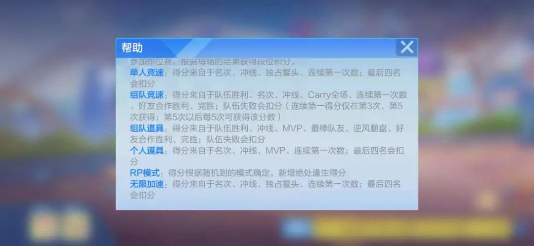 宝宝:想要排位上分,除了技术和熟悉地图,还有就是要熟悉排位赛的规则!在排位赛里有许多的加分项,比如冲过终点、独占鳌头、连续第一等,达成条件的话会获得更多的排位分。