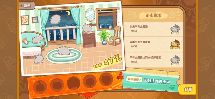 [攻略]容易漏掉的小奖励 1.点开图鉴 喵咪和家具图鉴 收集家具一套能领取50金枪鱼 2.过完一章也能领取50鱼[要手动点才能拿到]