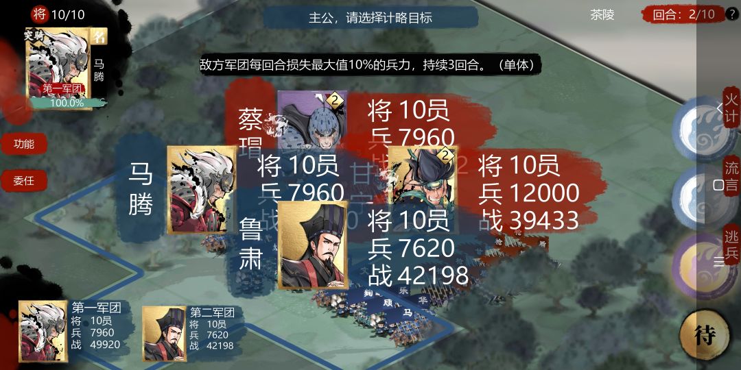 如果打郡城有三个敌方,主力最好先搞掉一个,然后无限流言+火计之类。