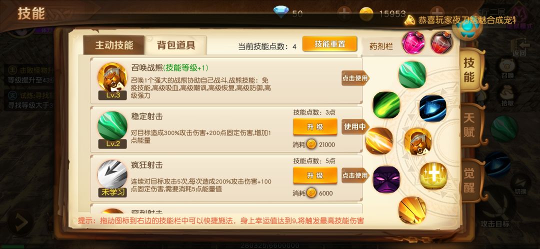 技能,熊先点满,稳定射击点一级就好,主要是回能量,穿刺回能量+拉怪点满,乱射输出点满