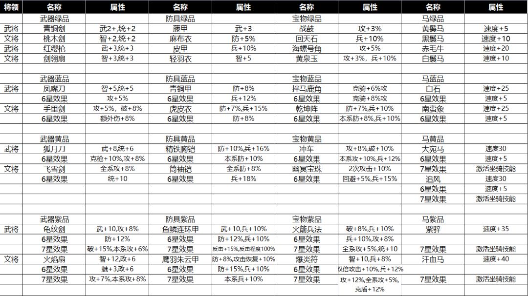 绿色到紫色装备图鉴