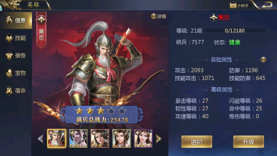 也是出于这样的特殊背景,我们在《君王3D》中将黄忠设定为老当益壮的形象,因其百步穿杨的绝妙箭法,将其定位为远程输出角色,是游戏中极其稀有的红色弓兵。