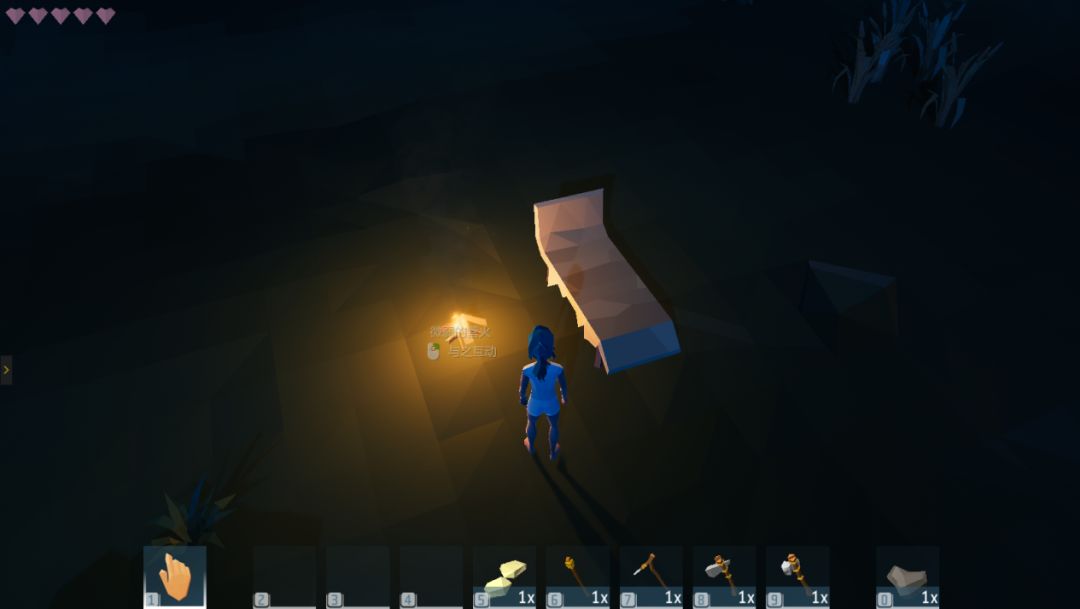 最后,使用“燧石x2”制作一个“燧石点火器”,点燃营火,伴随着微暖的火源躺在床上,一觉睡去就可以轻松度过岛上的第一天啦!