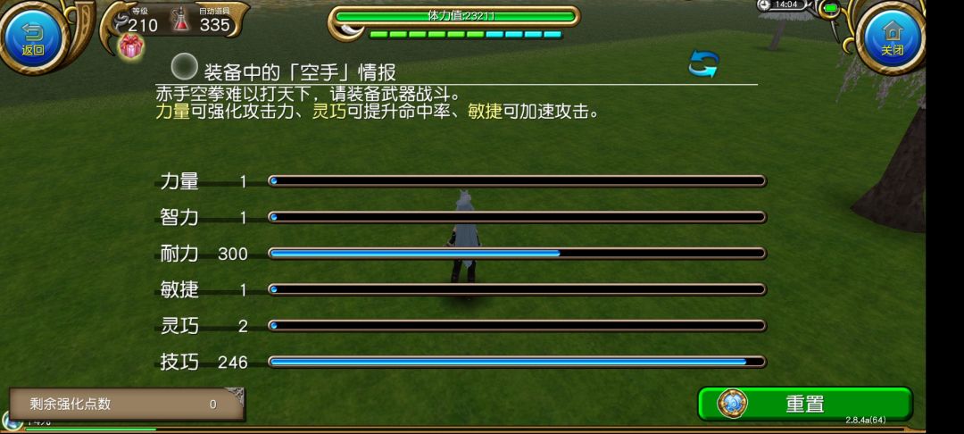 由于此处技巧是不能通过装备叠加的,又因为技巧需要除以二后取整,因此247技巧和246技巧事实上是等效的。不妨将这一点技巧加给灵巧,形成 300能力,2灵巧,246技巧 的加点。灵巧是可以通过装备叠加的,说不定就增加了一点玩家难易度呢。