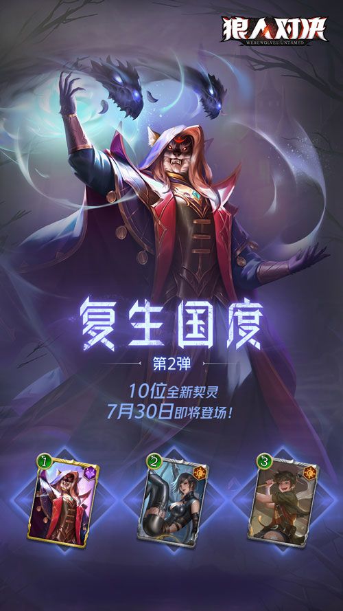 《狼人对决》全新拓展包”复生国度“第二弹将在7月30日上线!10位全新契灵,风格迥异,各有特色,给你不一样的游戏体验!诚邀各位策术师一起探索”复生国度“的秘密!