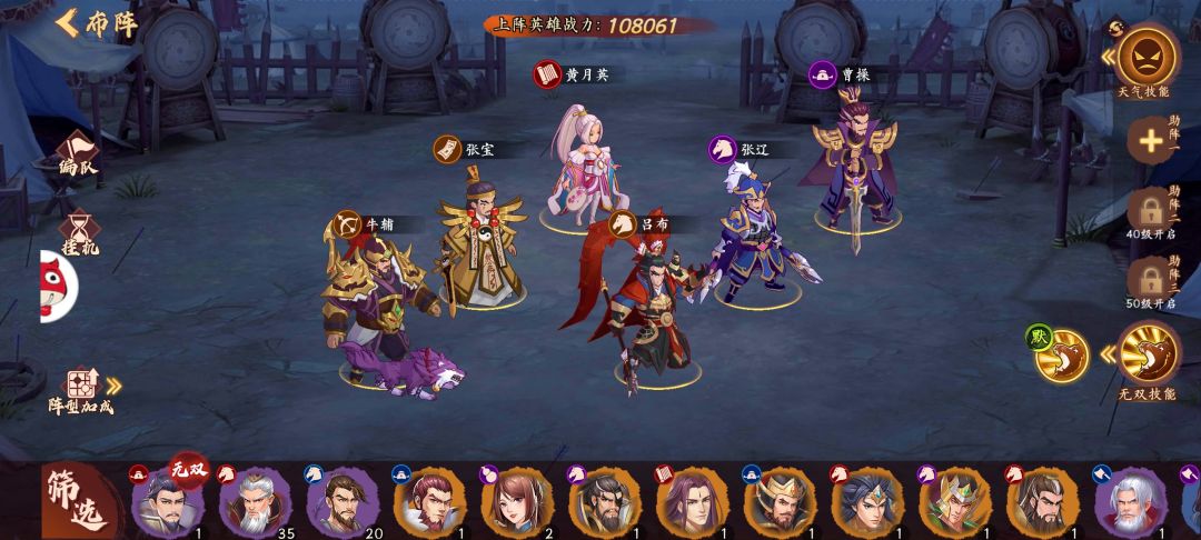 总的来说这套阵容对资源需求不大,当工具人达到一定等级就能发挥不错的出战能力,牛辅极快的出手速度配上他的破甲效果,可以给吕布提供更多的输出空间。张辽的身板也能保证一旦释放无双技能就能让吕布维持在天下无双的状态。到后期抽到貂蝉可以替换牛辅,让吕布天下无敌!