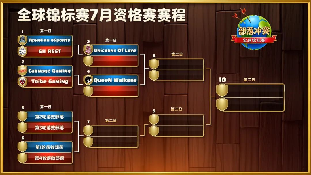 月度资格赛为期两天,采用双败淘汰制,参赛部落按照对阵图进行比赛。