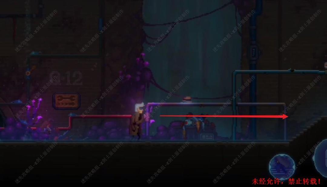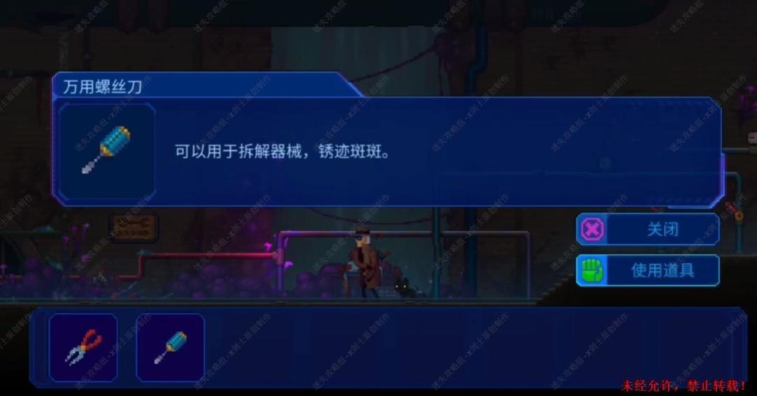 8. 在外面的场景往左边走,来到左边的零散机器部件位置,在这里使用万用螺丝刀,可以得到零件,往右走的时候就会触发小游戏。8