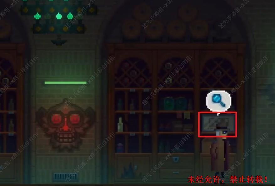 95. 来到最左边的柜子,在这里进行启动机关,将刚刚拿到的两瓶酒放到上面,如图进行放置之后上面就会出现提示。95.1