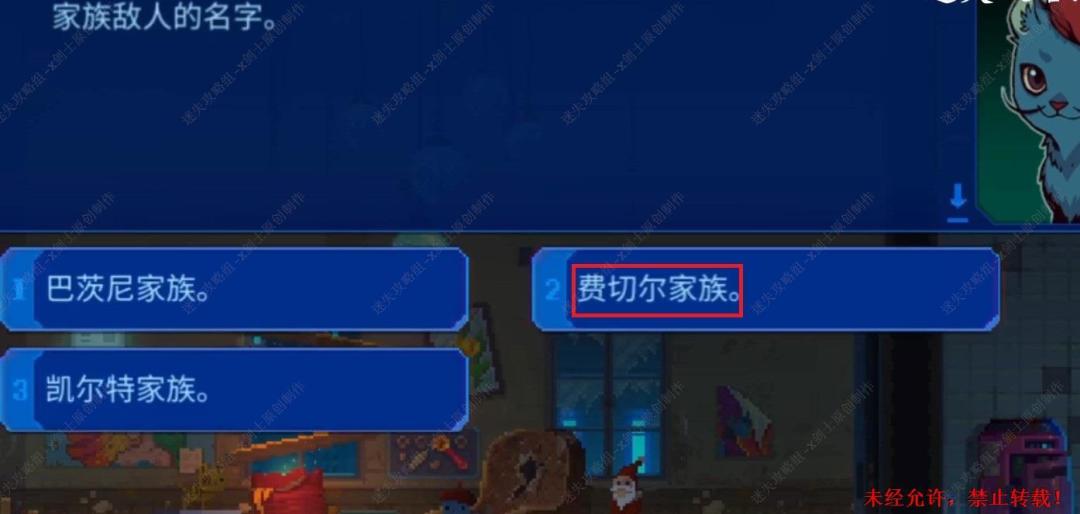 63. 第三个问题家族敌人的名字,第三个文图如图进行选择。选择正确之后就可以得到摇杆了。63