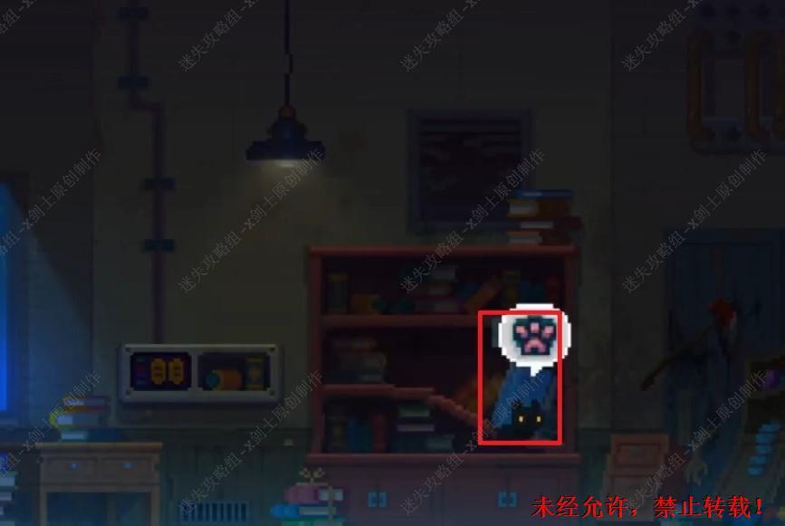 80. 来到最下层的位置之后,再最右边的位置可以找到资料,在这里可以进行占卜猫的占卜,之后可以通过管道上到最上,之前的猫不会再阻拦我们可以离开这里了。80.1