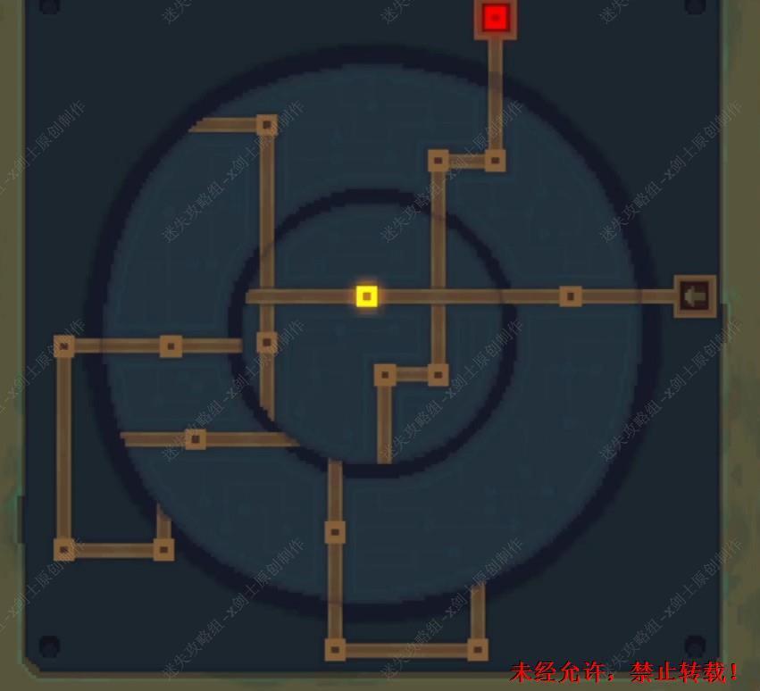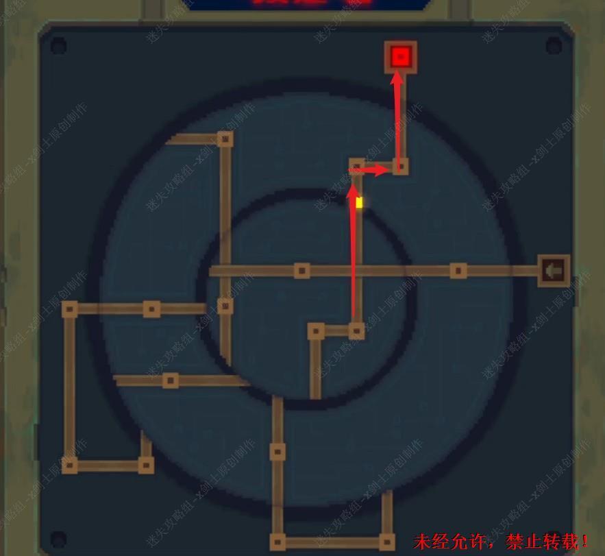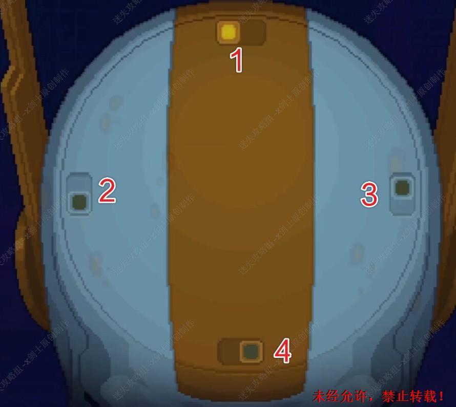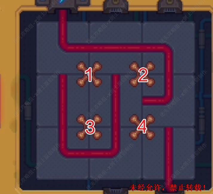 19. 这个小游戏室点击中间4个旋钮,点击之后四周就会进行选装,在这里将四个旋钮分为1到4,如图12111444。这个路线就调整完成了。19