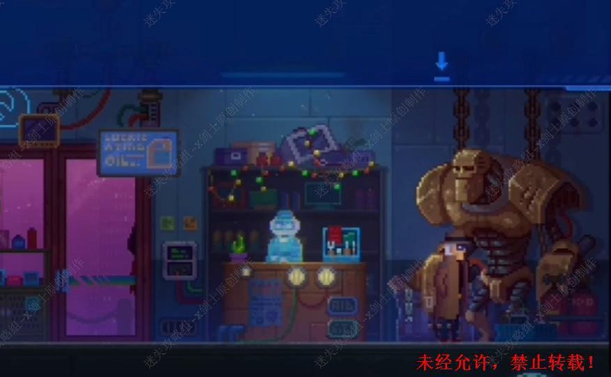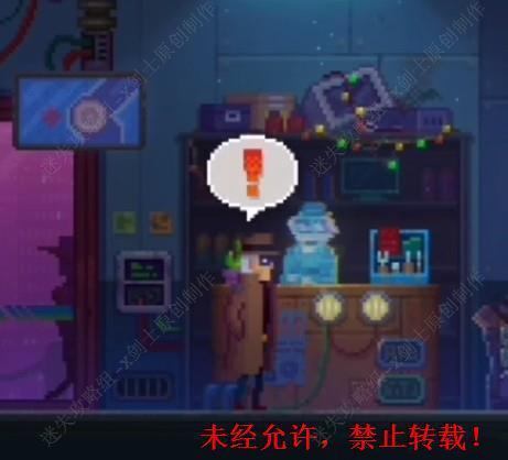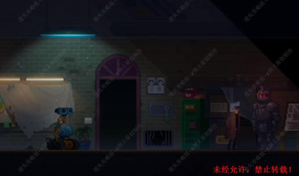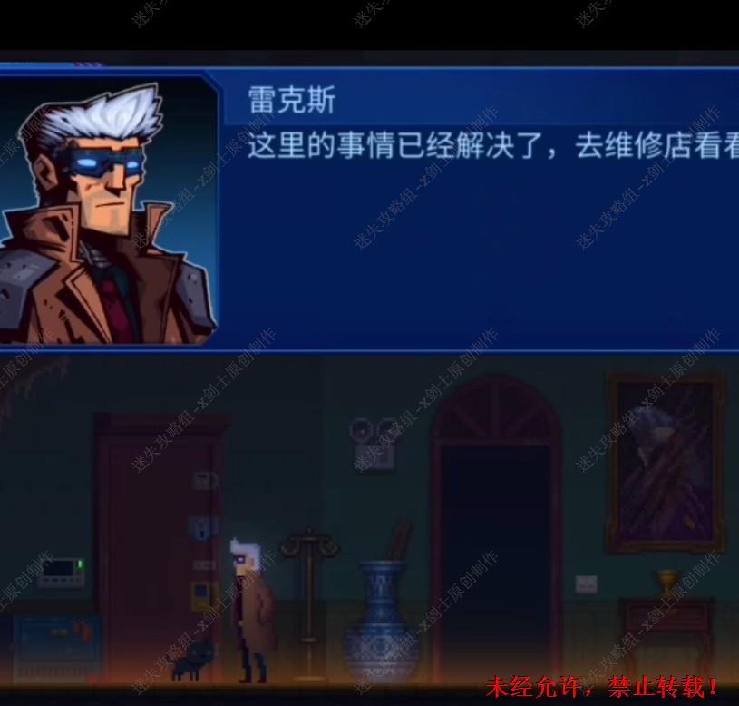 33. 在维修店的平台上面和店主进行交谈,可以来到旁边机器人上面的位置获得信息。33.1