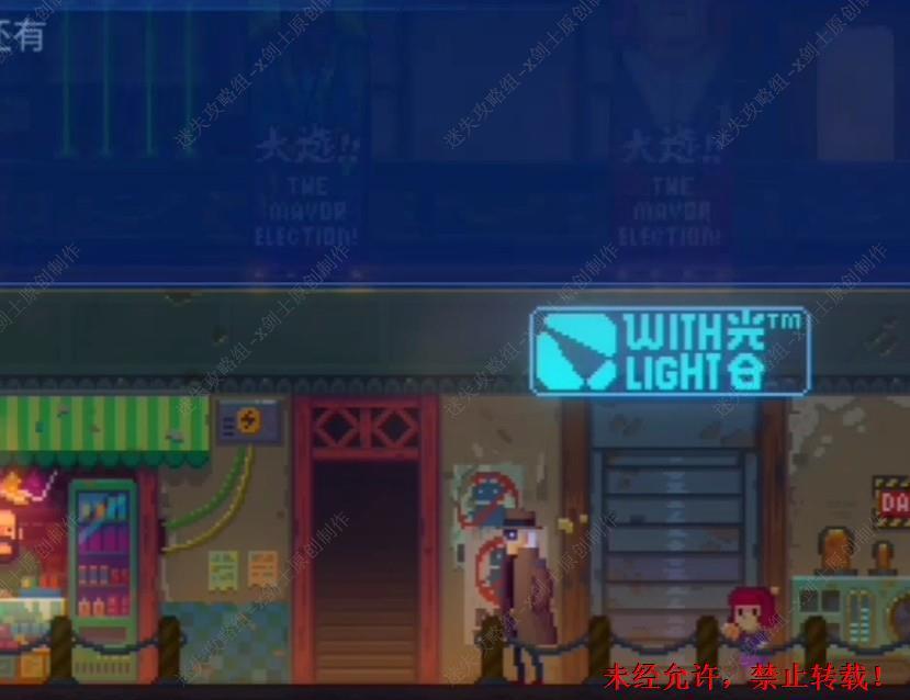32. 来到外面的位置,首先在旁边的海报的位置上面可以的到信息。之后王往右边走进入到维修店当中。32.1
