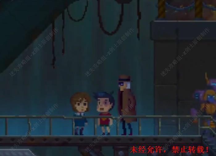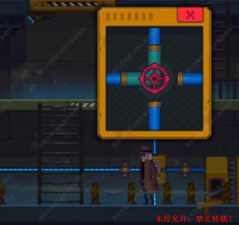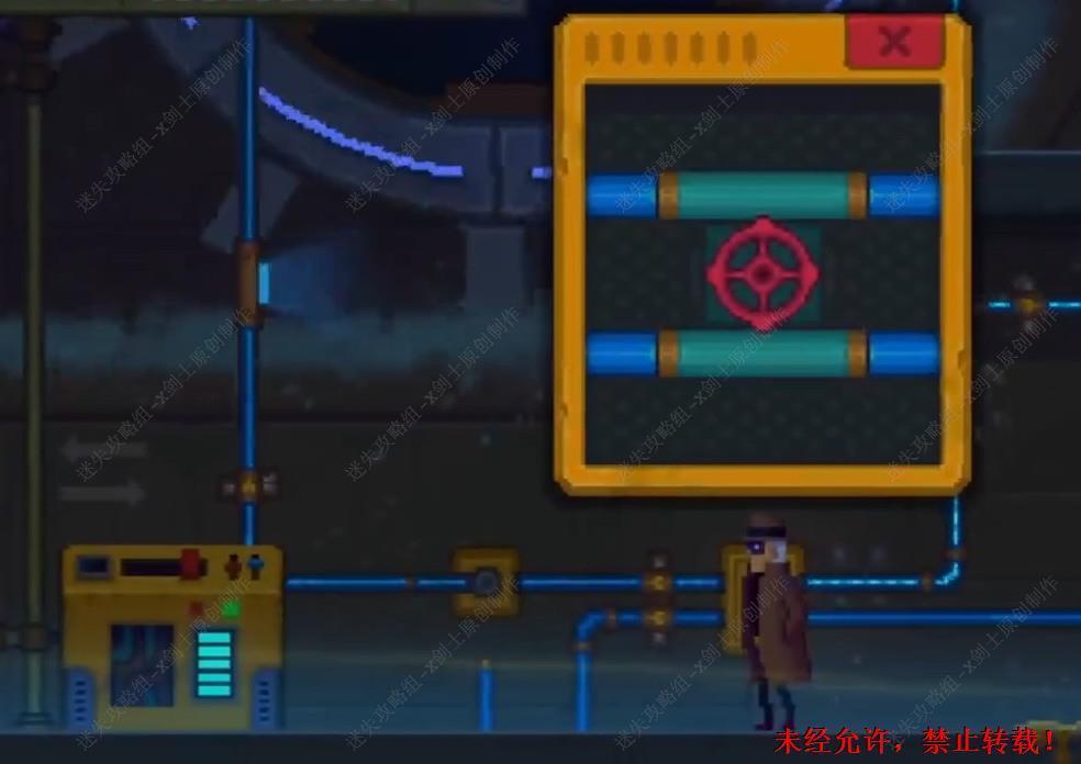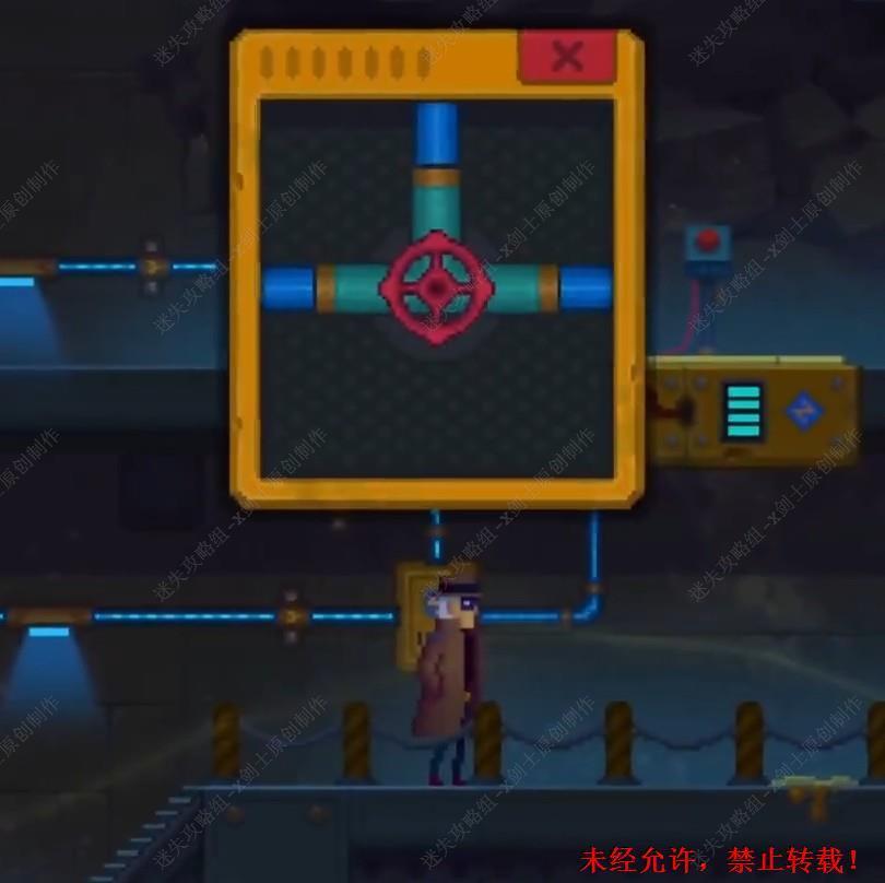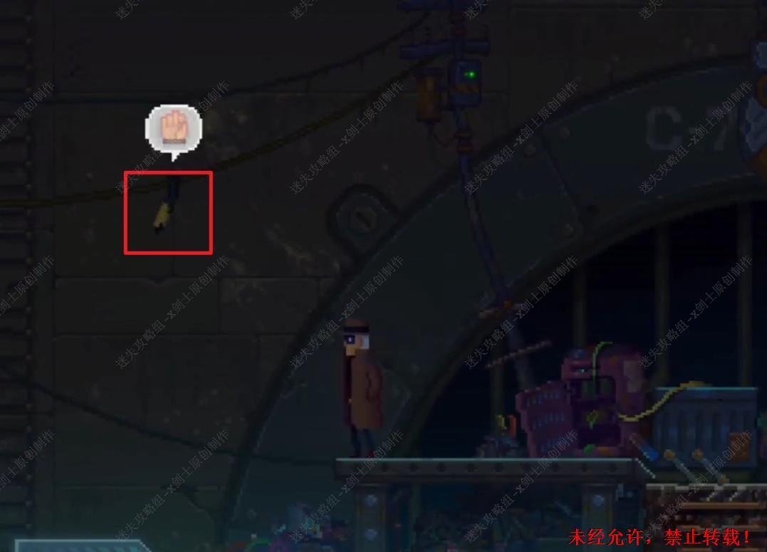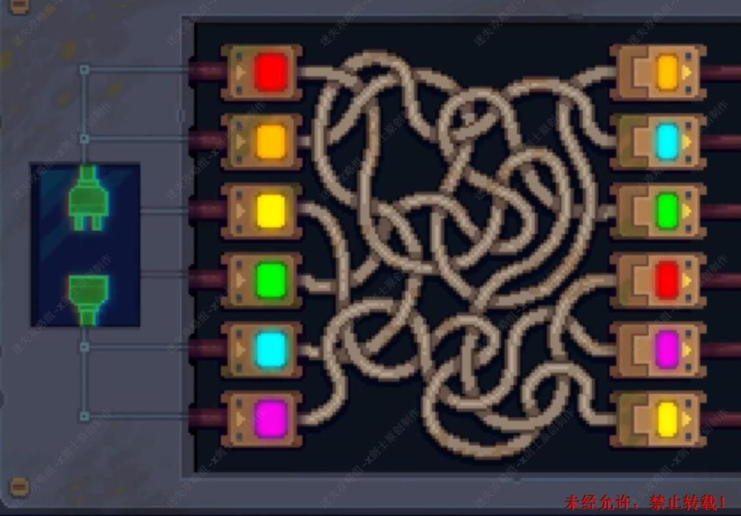 138. 在这里拆开这个机器就会发现这是一个接线游戏如将上面的线头放置好,之后就可以来到桥上跟这个投影机器人进行交谈了。138